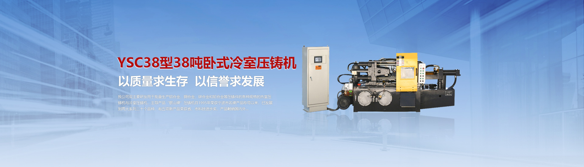 我司現(xiàn)主要研發(fā)用于批量加工生產(chǎn)鋁合金、銅合金、鋅合金和鉛合金等壓鑄件的各種型號規(guī)格的熱室/冷室壓鑄機,主導產(chǎn)品“銀山牌”壓鑄機自1995年榮獲寧波市名牌產(chǎn)品稱號以來,已發(fā)展到兩大系列二十個品種,有五項產(chǎn)品曾榮獲省、市科技進步獎,產(chǎn)品暢銷國內(nèi)外。歷年來向用戶提供了8000余臺設備,為中國的壓鑄工業(yè)發(fā)展作出了重要的貢獻,企業(yè)獲得了很高的信譽度。